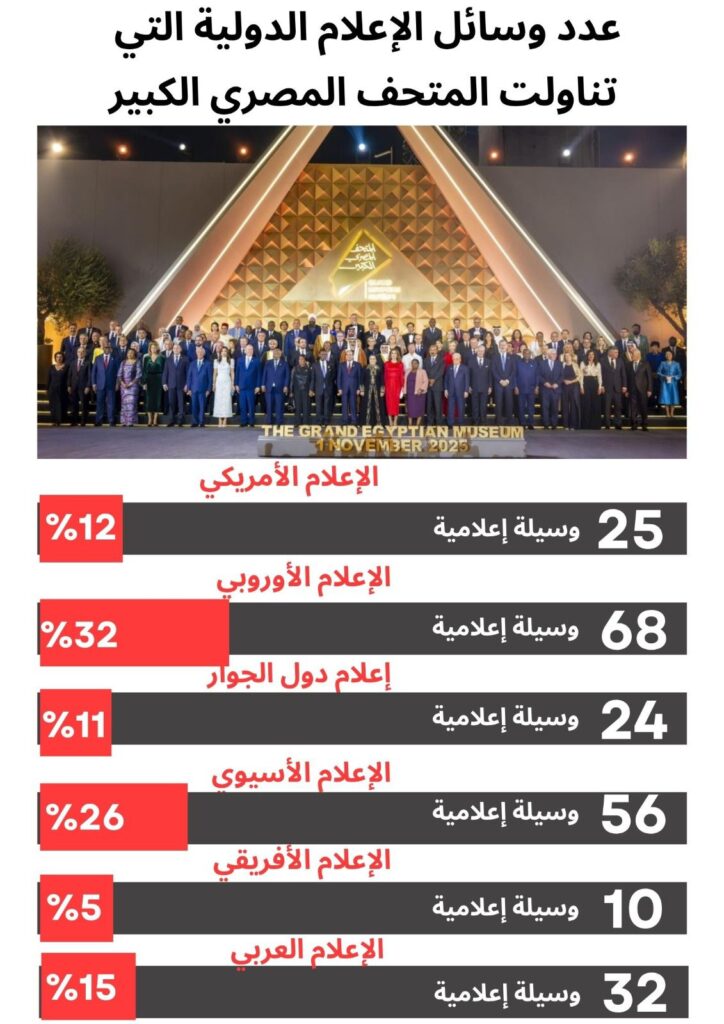 هذه الحقائق أكدها الرصد الإعلامي الذي قامت به قطاعات الهيئة العامة للاستعلامات على مدى اليومين الماضيين، حيث صرح الكاتب الصحفي ضياء رشوان رئيس الهيئة أن متابعة ورصد القنوات التليفزيونية وتطبيقات البث الرقمي على وسائل التواصل، التي قامت بها الهيئة على مدار الساعة طوال اليومين الماضيين قد كشفت أن الأغلبية العظمى من قنوات التليفزيون ووسائل البث الرقمي بالصوت والصورة قد بثت فترات طويلة من حفل افتتاح المتحف المصري الكبير بما في ذلك القنوات الإخبارية والسياسية الرئيسية في العالم، فضلاً عن عشرات من وكالات الأنباء المصورة بكافة اللغات.