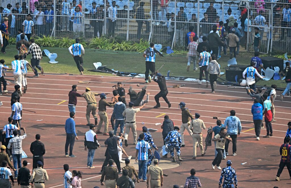 أقدم مشجعون قدموا لرؤية نجمهم ليونيل ميسي، الذي استهل جولة ترويجية نادرة في الهند، على تخريب ملعب في كالكوتا “شرق البلاد” السبت، بعد مغادرة النجم الأرجنتيني.