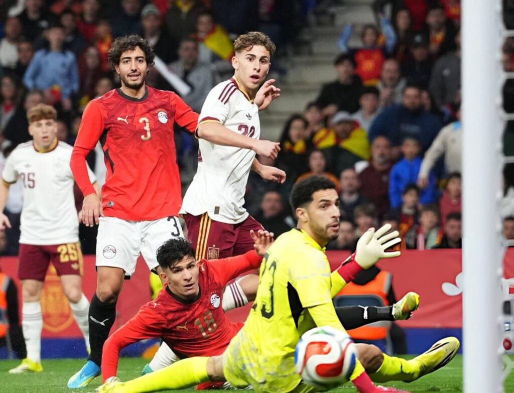 مصطفى شوبير يخطف الأنظار أمام إسبانيا.. تألق لافت واهتمام أوروبي متزايد