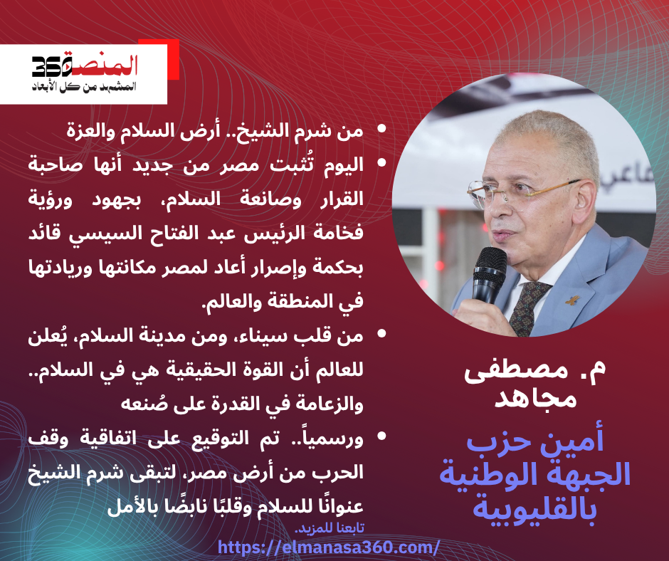 من هنا عبر المهندس مصطفى مجاهد أمين عام حزب الجبهة الوطنية عن سعادته واعتزازه ببلاده وقيادتها تحت لواء الرئيس عبدالفتاح السيسي قائلا: “من قلب سيناء، أعلن للعالم أن القوة الحقيقية تكمن في السلام، وأن الزعامة ليست في فرض الواقع بالقوة، بل في القدرة على صناعته وفرض الاستقرار”.