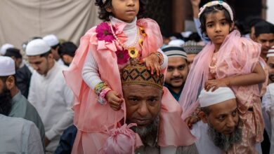 مسلمو الهند يحتفلون ويؤدون صلاة عيد الفطر في أجواء ضبابية داخل الجامع الكبير بنيودلهي