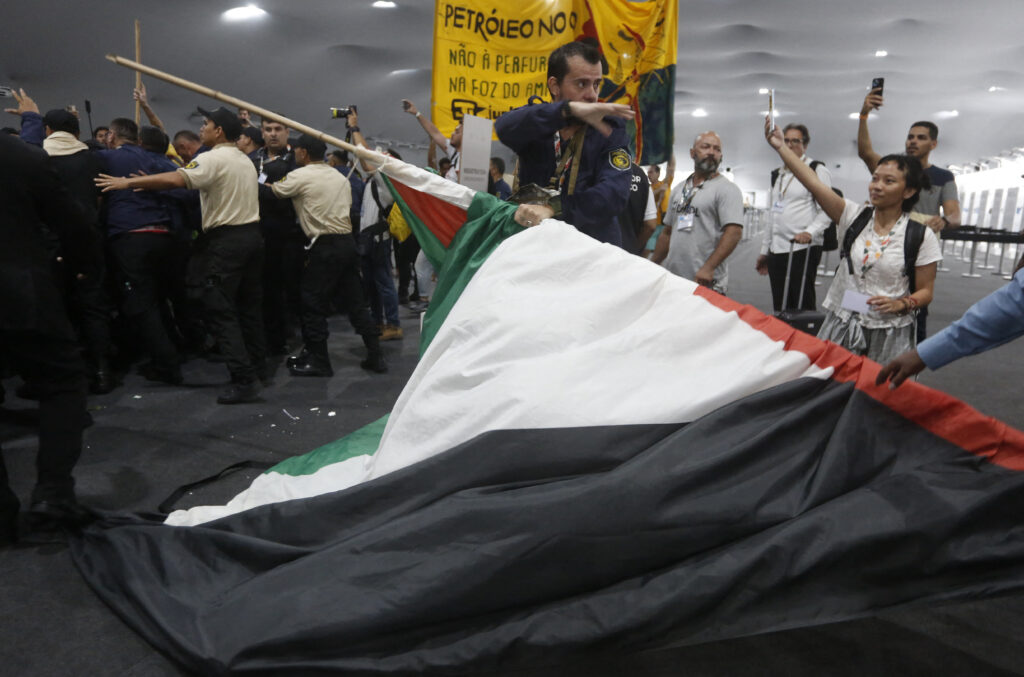 في المقابل شهدت الساعات الأخيرة من اليوم الثاني اشتباك بين عشرات المتظاهرين من السكان الأصليين مع حراس أمن قمة المناخ (كوب30) ، في حدث نادر ما يحصل في مؤتمر المناخ السنوي للأمم المتحدة.
